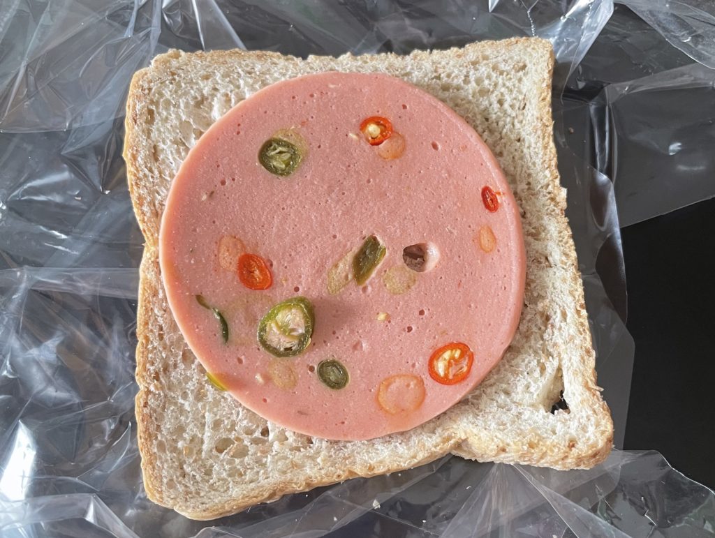 Mein Frühstück ist tatsächlich eher ungewöhnlich für Thailand, eigentlich isst man hier eher Suppen oder Dim Sum, aber ich bin vermutlich einfach zu deutsch und brauche mein Brot 😉 Obwohl es so richtiges Brot hier leider kaum – oder nur für sehr viel Geld – gibt. Daher besteht mein Frühstück aktuell hauptsächlich aus Toast mit Chili-Mortadella. Im Gegensatz zu Deutschland, sind hier nämlich keine Paprika eingearbeitet, sondern ganze Chilis. Am Anfang fand ich das etwas gewöhnungsbedürftig, direkt morgens so scharf zu essen, aber inzwischen gefällt es mir richtig gut 😀