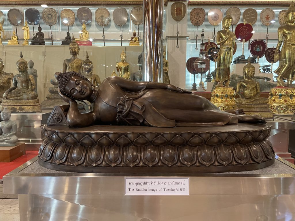 Im Museum habe ich auch rausgefunden, dass jedem Wochentag eine Buddhaposition zugeschrieben wird und damit auch bestimmte Farben und Eigenschaften. Ich bin dienstags geboren, deshalb ist mein Buddha der liegende und meine Farbe rosa – das erklärt ja so einiges 😉