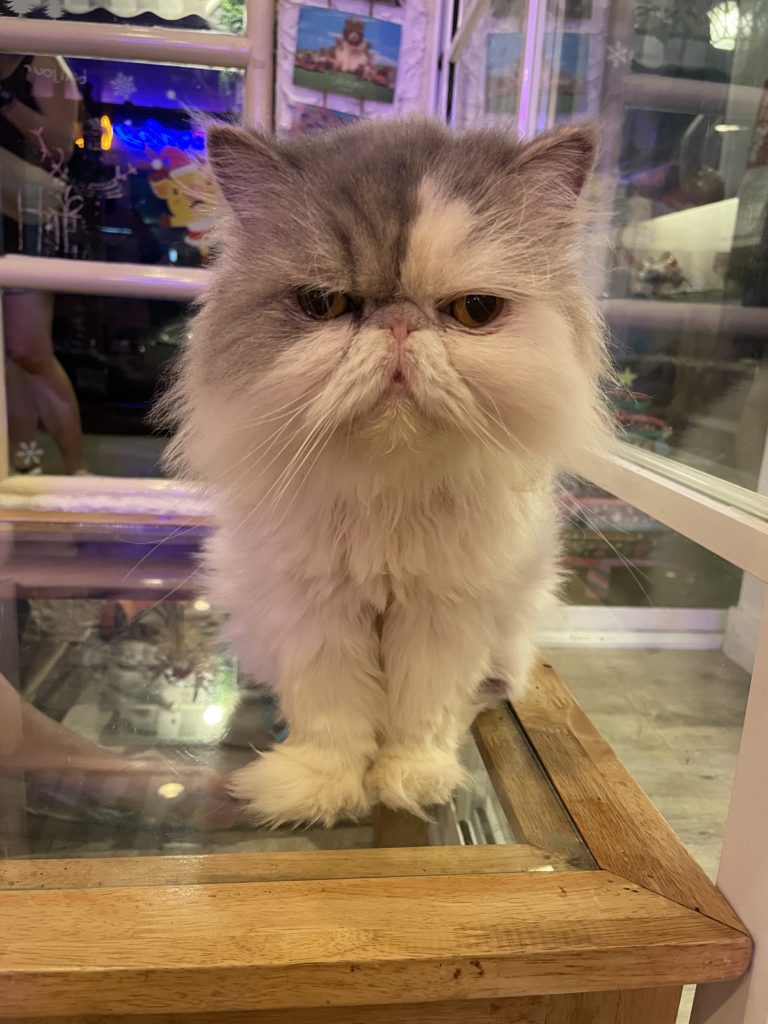 Vor kurzem war ich in einem Katzencafé (in Bangkok gibt es davon echt viele) und das war einer der verrücktesten Orte, an denen ich je war. 33 Katzen und ganz viele Menschen auf engstem Raum. Die Katzen durfte man zwar nicht hochheben, aber sie in einer Schale zum Tisch tragen. Besonders gut haben mir die Grumpy-Cats gefallen, die sehen so schlecht gelaunt aus, dass ich immer lachen muss. Aber natürlich ist auch die Ahnenreihe einen Blick wert 😉